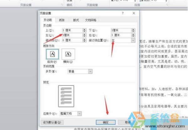 2、進入頁面設(shè)置以后,把紙張大小設(shè)置為:A4紙,頁邊距:上下左右都設(shè)置為3厘米。