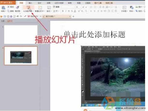 7、我們可以回到“開始”菜單,播放當前頁面的幻燈片。