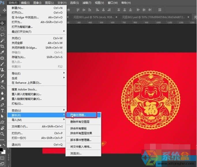 2、在文件菜單下找到腳本→圖像處理器,快速將我們的圖像處理器窗口調出來。