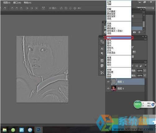 5、我們進入右邊的圖層界面把圖層類型由正常改為疊加。