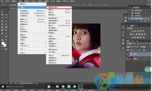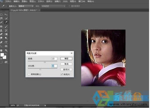 7、這時我們選擇圖像——調整——亮度/對比度,使照片的亮度提高一點,看起來不會反差太大。