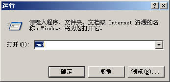 2、在“運(yùn)行”中輸入cmd,并點(diǎn)擊“確定”;