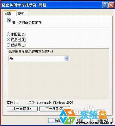 2、依次展開“用戶配置→管理模板→系統”,然后在右側窗口找到并雙擊“阻止訪問命令提示符”策略 ![]() 3、選擇“以禁用”然后確定 4、測試CMD命令是否有效。 Windows XP服役時間長達13年,產生的經濟價值也較高。2014年4月8日,微軟終止對該系統的技術支持,但在此之后仍在一些重大計算機安全事件中對該系統發布了補丁。 |